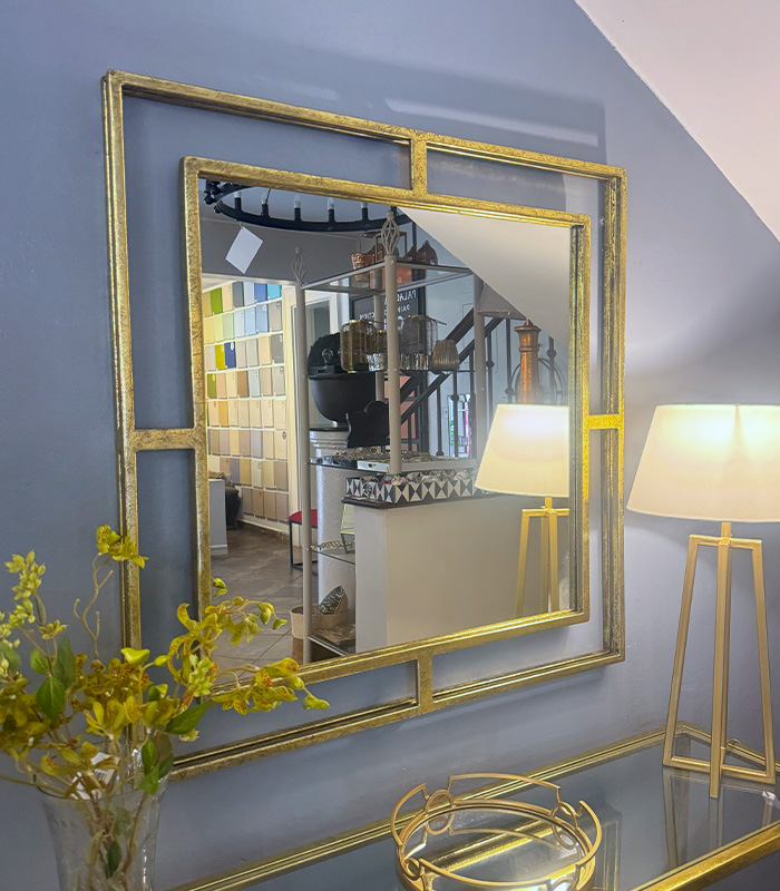 Infuse modern sophistication into your space with this Contemporary Gold Foil Square Mirror. The sleek, minimalist square design is accentuated by a unique overlapping frame, finished with an elegant gold foil that exudes luxury and style. Perfect for enhancing modern living spaces, entryways, or dining areas, this mirror’s bold geometric design creates an artistic focal point while reflecting light and opening up your room.