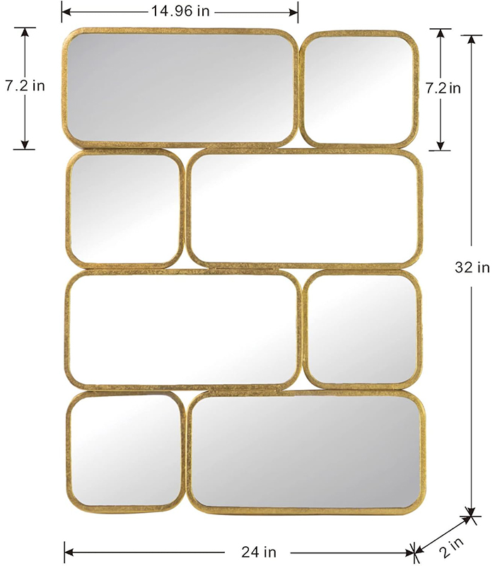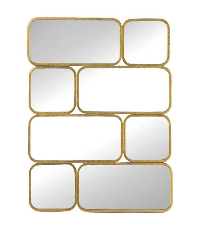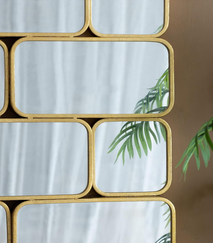 The Gold Geometric Panel Mirror is more than a mirror it’s a statement piece. With its layout of rounded-edge rectangular panels framed in an antiqued gold finish, this wall mirror brings visual rhythm and modern luxury to any space.