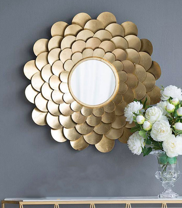 Bring timeless elegance and sculptural beauty to your space with our Gold Sunburst Floral Mirror. Measuring 32 inches in diameter, this eye-catching piece is designed to elevate entryways, living rooms, or dressing areas with a bold yet graceful statement.